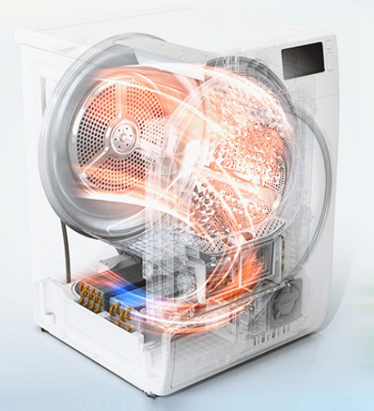 Đây là công nghệ tiên tiến nhất. Máy sử dụng máy nén (tương tự máy lạnh) để tái sử dụng nhiệt năng, giúp tiết kiệm đến 50% điện năng và bảo vệ sợi vải cực tốt.